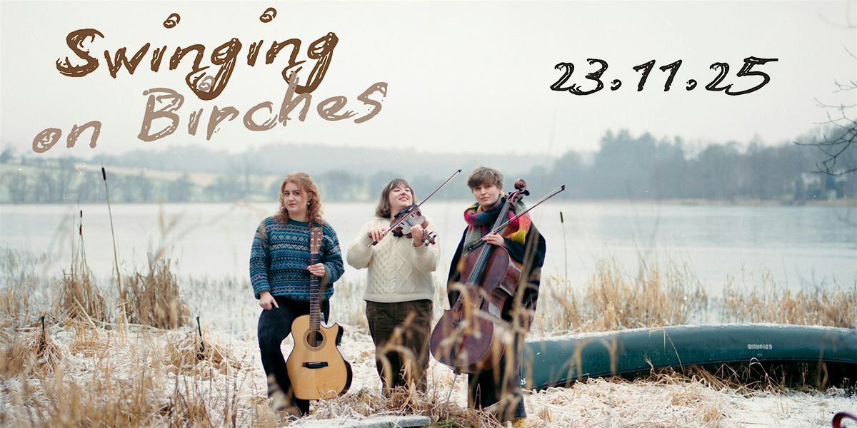 Swinging on Birches is an exciting new trio consisting of Heather Cartwright (singer/guitarist), Madeleine Stewart (fiddle player), and Juliette Lemoine (cellist). The band weave songs, tunes and harmonies across instruments, creating lush, intricate pieces. Their music is drawn from their shared love of Scottish traditional music, though each musician brings her own interpretation from different musical backgrounds. Juliette plays trad/jazz fusion in her own band and studied classical music, Heather sings her own songs as well as traditional ones and plays fingerstyle guitar and folk music, and Madeleine plays in a trad/classical string quartet and has been playing traditional fiddle music since childhood. Each of the trio has been making her mark on the UK music scene individually, and now they are joining forces to form Swinging on Birches.