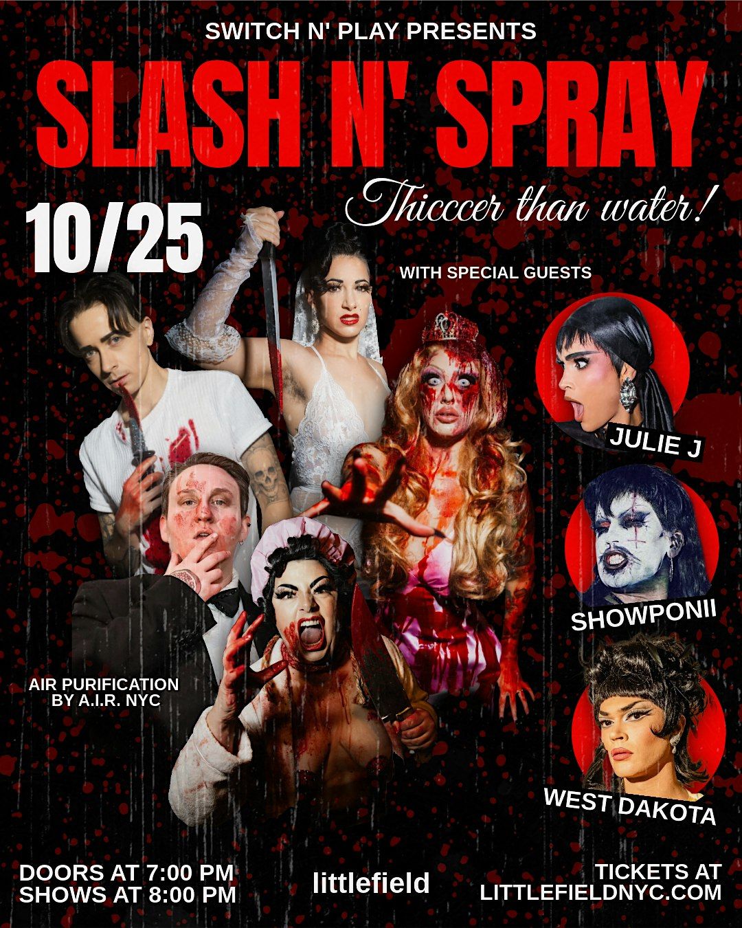 Jumpscare! Legendary Brooklyn drag collective Switch n’ Play is BACK and ready to slay at SLASH N’ SPRAY!! Join us for a spine-chilling Halloween drag spectacle featuring performances by the collective + very special guests JULIE J, SHOWPONII, and WEST DAKOTA!