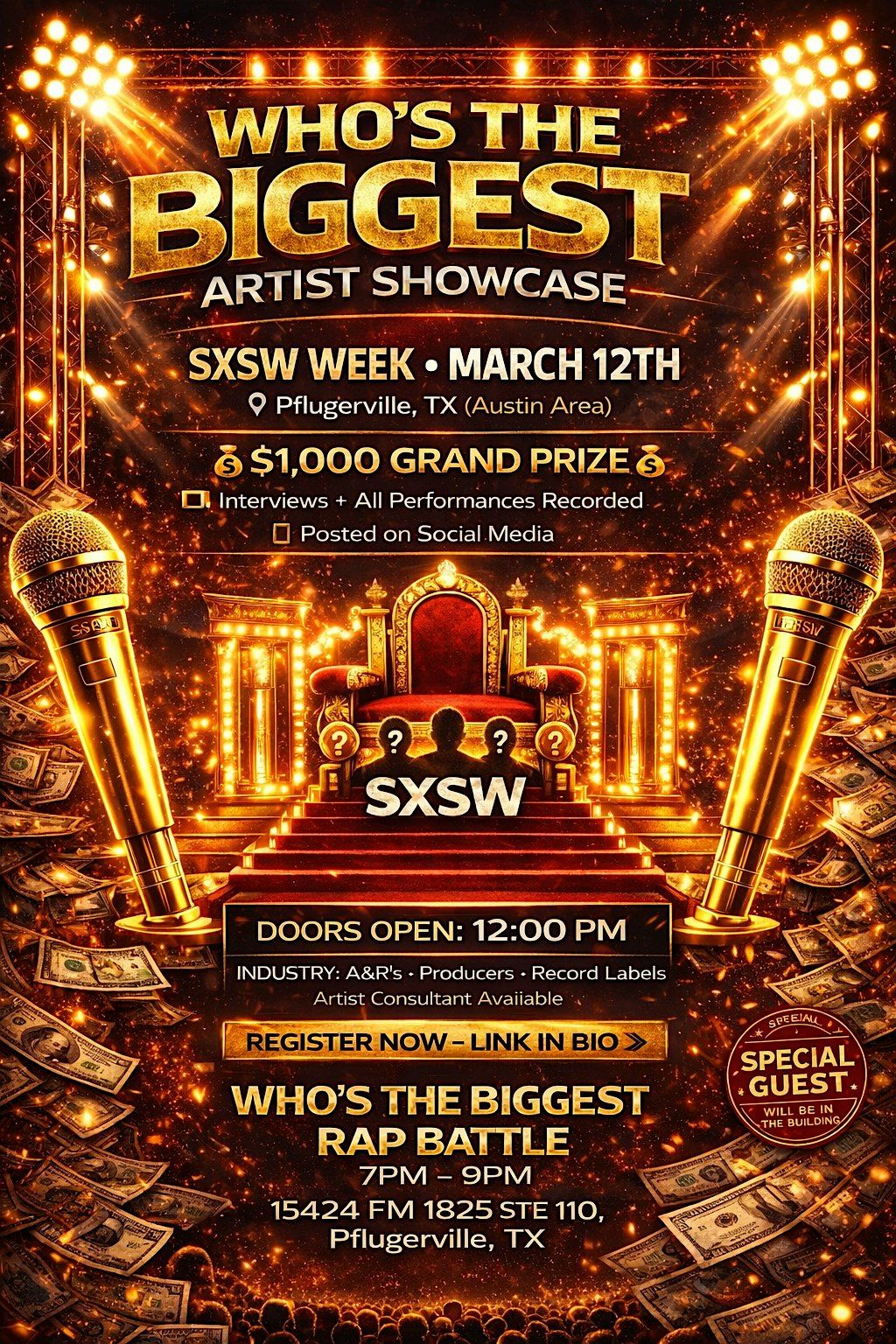 Get ready to witness the ultimate showdown of talent at the SXSW "Who's the Biggest Artist Showcase"!