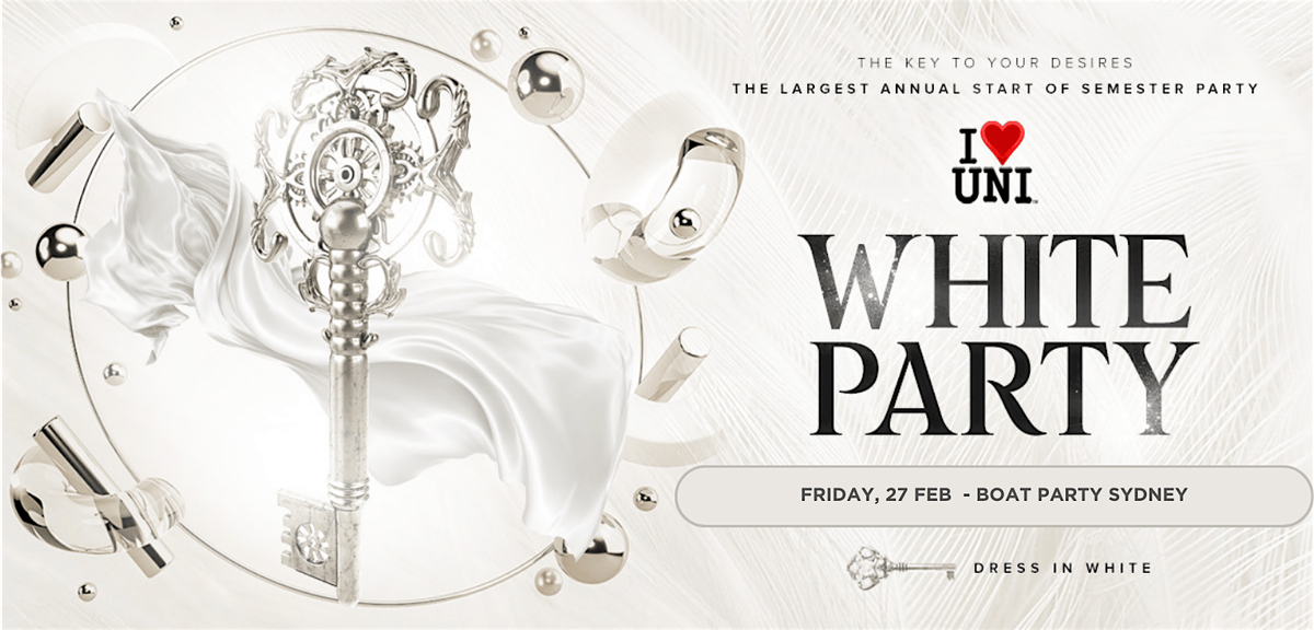 This year, I Heart Uni will unlock the key to your desires and transform one of Sydney's spectacular boats into the Biggest White Themed Party that will dazzle all the senses. With an audience of, 500+ students all dressed in White across all the major universities and colleges, get excited for a tidal wave of unity and euphoria! Follow @ for your chance to win a $50 bar tab!