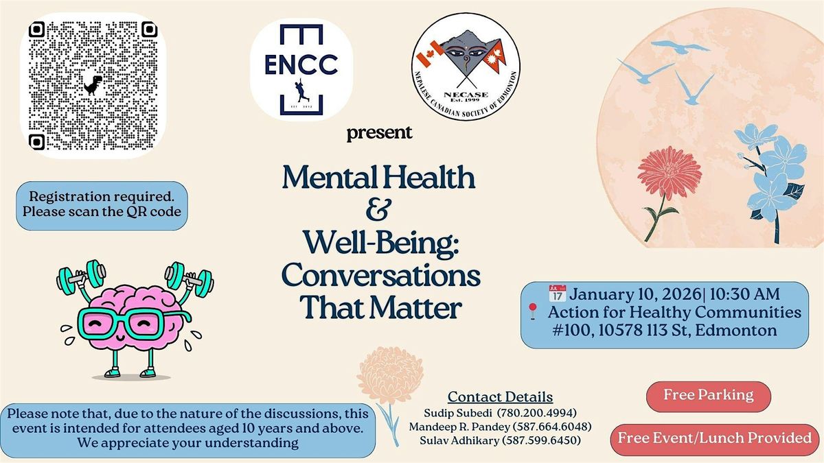 The Nepalese Canadian Society of Edmonton (NECASE) and the Edmonton Nepalese Cricket Council (ENCC) are pleased to invite you to a community event, Mental Health & Well-Being: Conversations That Matter.