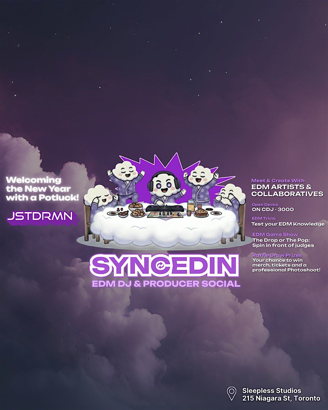 The FIRST SYNCEDIN of the year is happening Feb 12th! This is a space for creatives in the electronic music industry to connect and hang out.
