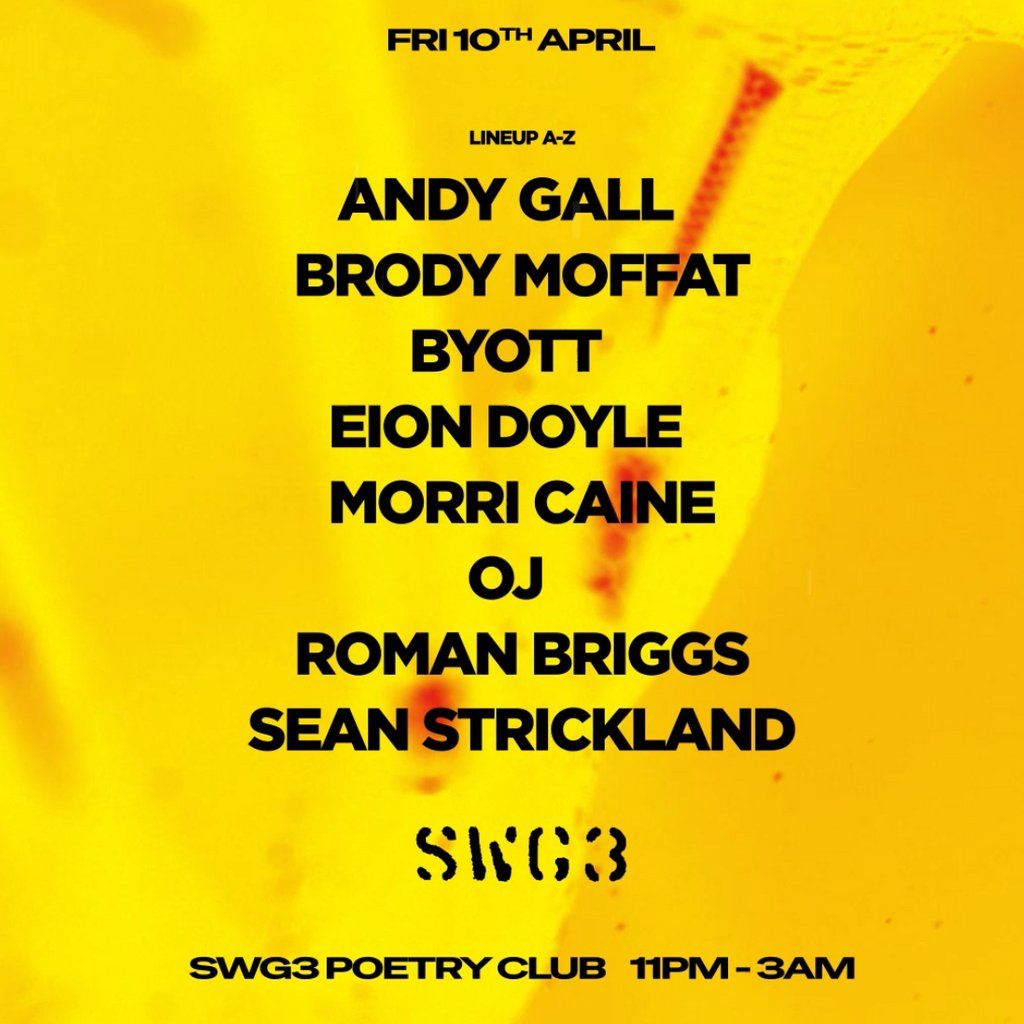 Synthetic Residents and Special Guests take on SWG3 Poetry Club on Friday April 10.