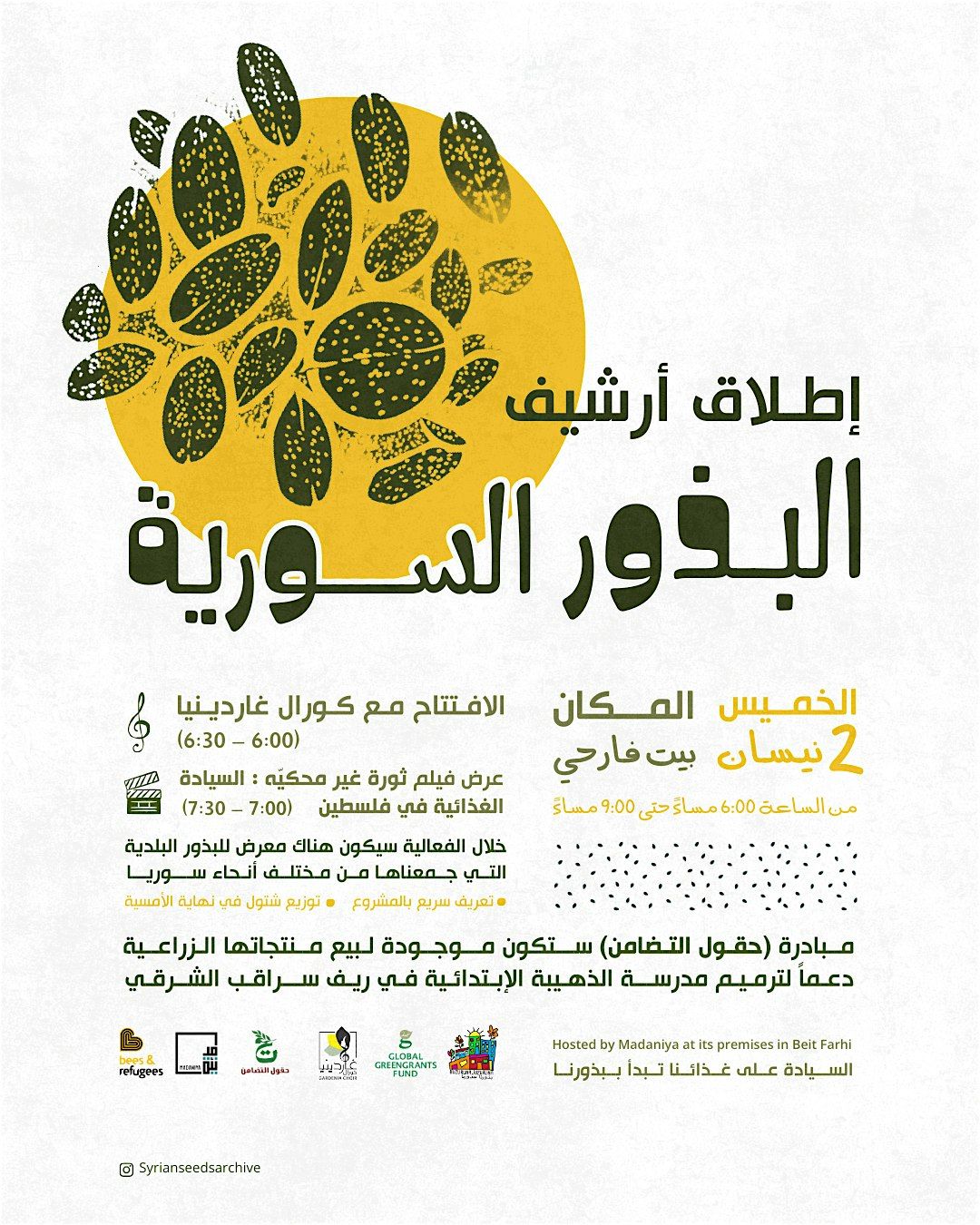 ندعوكم للانضمام إلينا في إطلاق هذه المبادرة، في أمسية نحتفي فيها بالبذور، بالمعرفة الزراعية المتوارثة، وبالحق في غذاء حر ومستقل