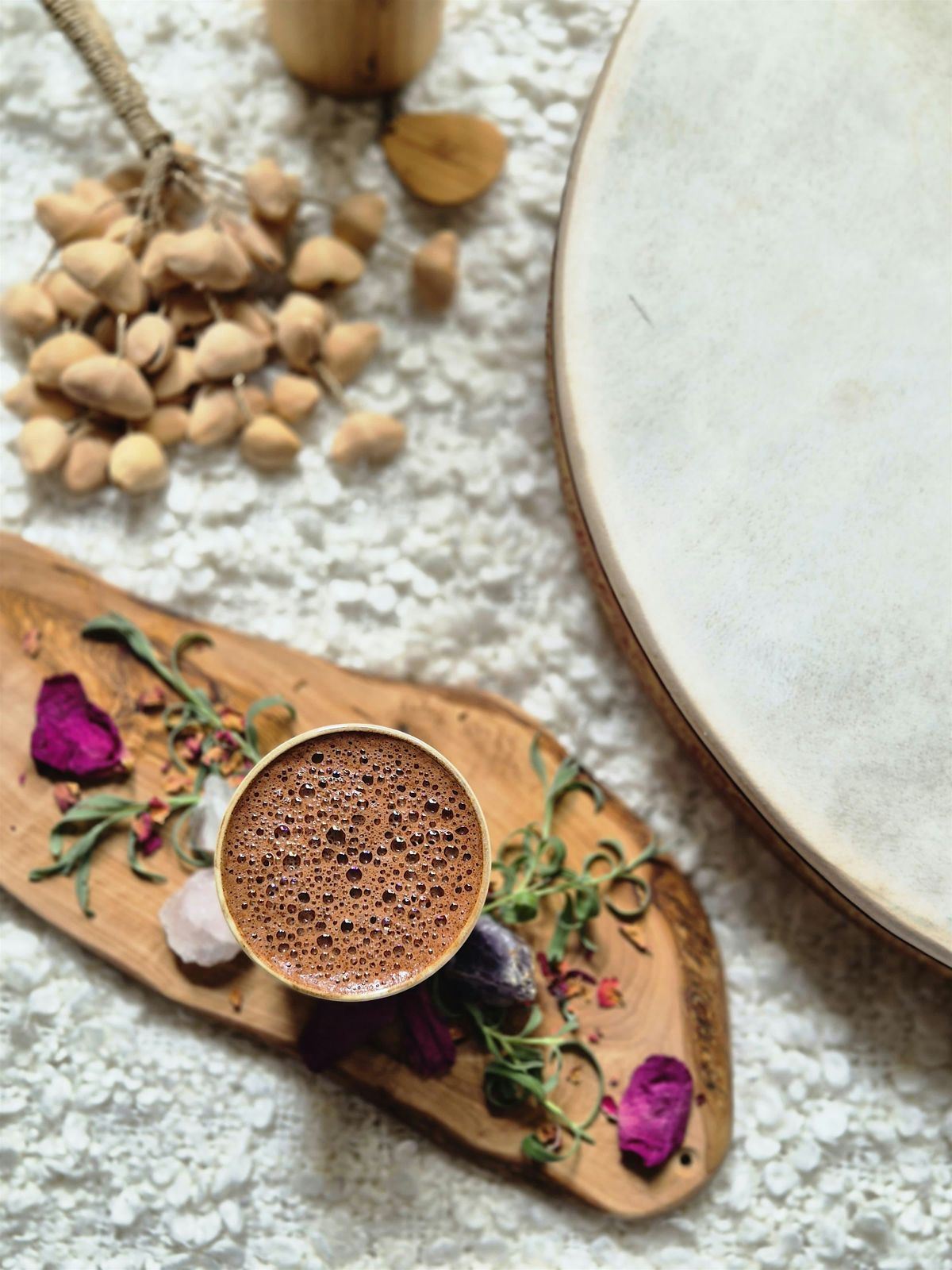 Zeremonieller Rohkakao aus Peru ist mehr als nur ein Getränk – er gilt als sanfte "Pflanzenmedizin", die deinen Herzraum öffnen, deine Intuition stärken und dich unterstützen kann, in eine feinere Präsenz zu kommen. Perfekt, um dich auf den Ablauf einzustimmen.