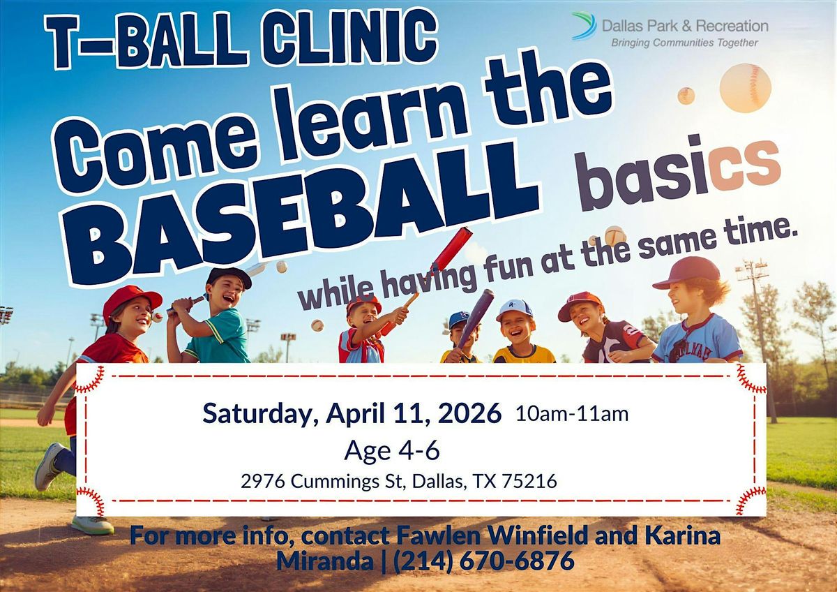 Get your kiddos ready for a fun filled T-Ball Clinic. Your children will learn the basics while having fun.