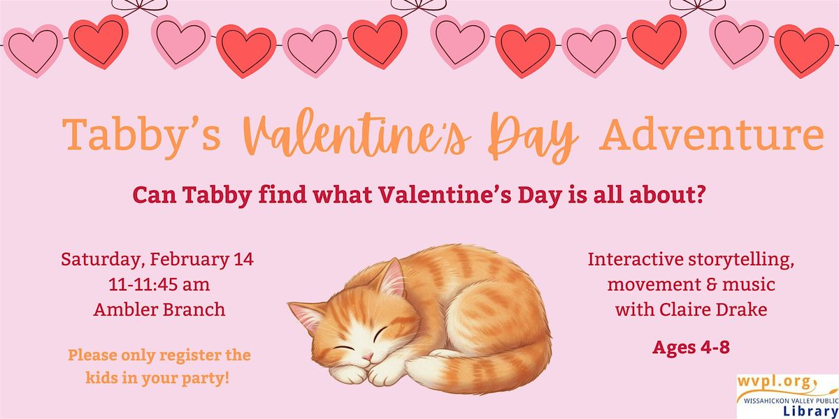 Get ready for a fun-filled event packed with storytelling, music, and movement led by Claire Drake. It's the perfect way to celebrate Valentine's Day with lively stories and some energetic fun for the little ones. Don't miss out on this heartwarming adventure with Tabby the cat!