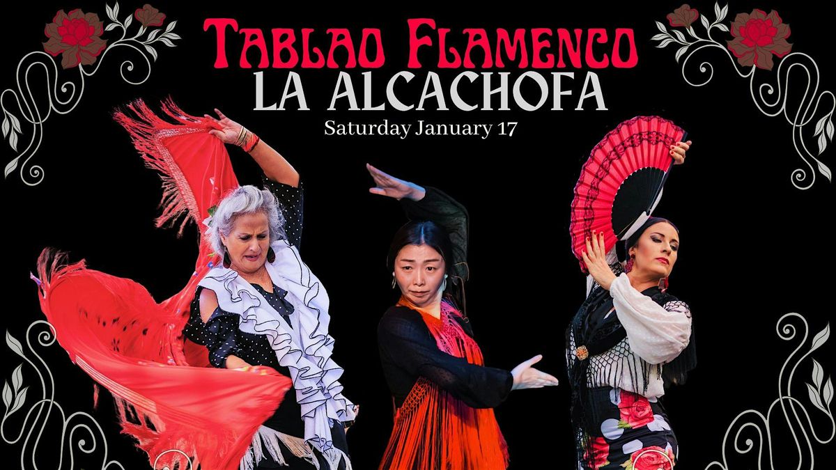 Experience the magic of flamenco in an intimate space at Tablao Flamenco la Alcachofa! Each tablao show is unique as artists improvise and create in the moment, fostering an artistic conversation between musicians, singers, and dancers. Our January Tablao features guest dancer Lourdes Rodriguez with Shiho Travis and Nela McGuire, Randa BenAziz (vocals), Cara Eckhardt (vocals), Brenna McDonald (guitar), and Nick Hutch (percussion).