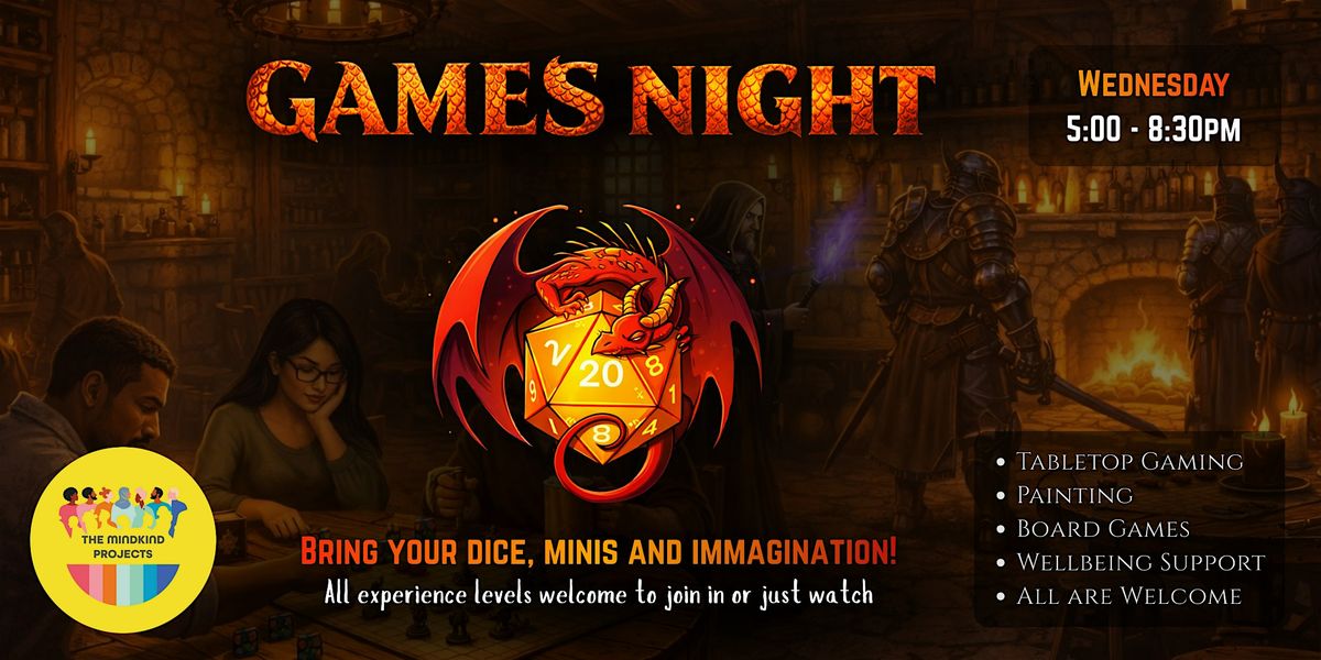 Join us for a welcoming and relaxed Games Night where creativity, connection, and community come together.