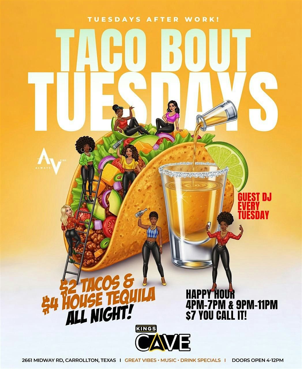 Get ready to spice up your week with Taco Bout Tuesdays! Join us in person for an after work vibe evening filled with tasty tacos, good vibes, and great company. Whether you're a taco lover or just looking for a fun way to spend your Tuesday, this is the spot to be. Bring your friends, bring your appetite, and let's taco 'bout having a blast together with $2 Tacos, $4 Tequila shots all night.