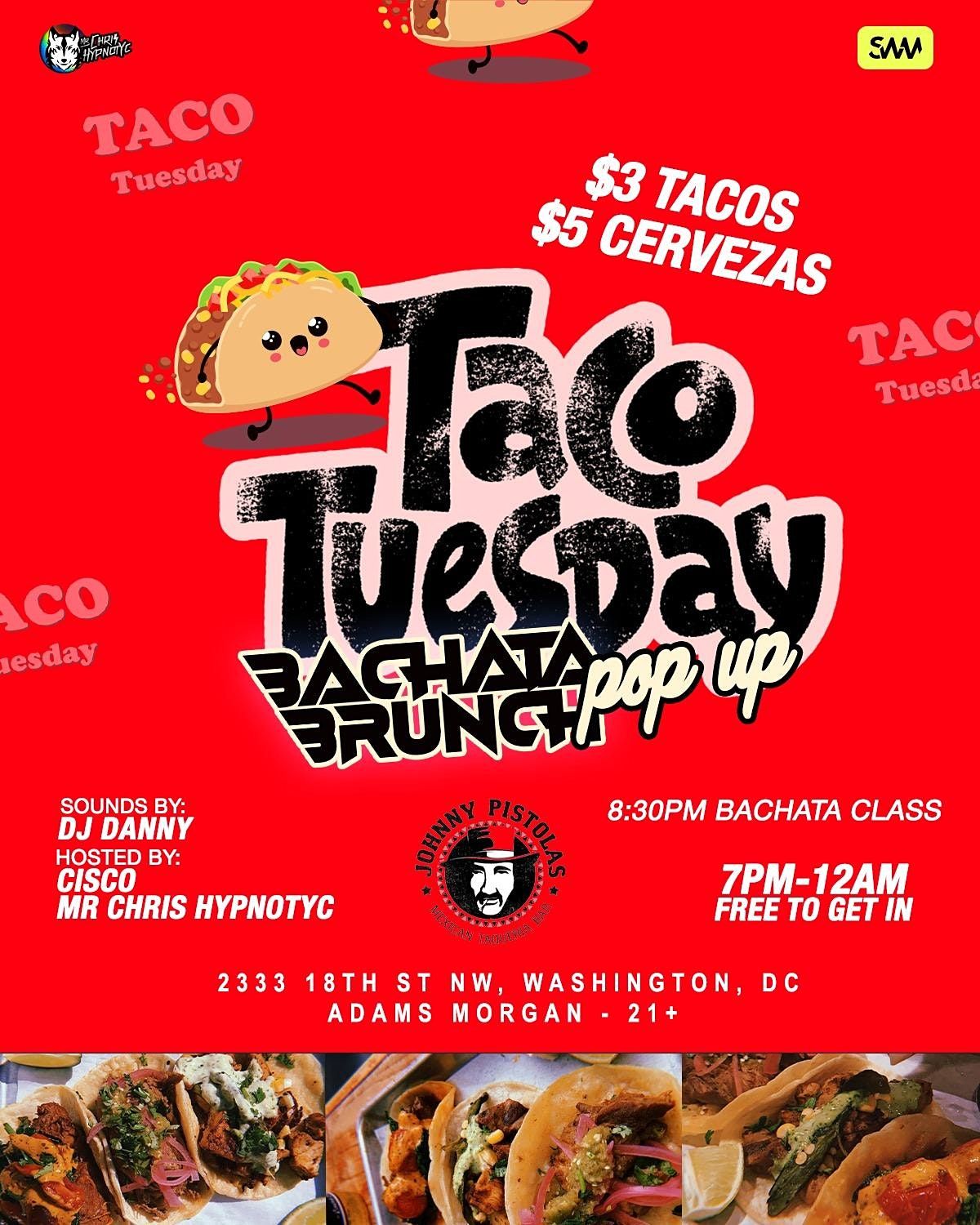 Bachata Brunch brings you a Taco Tuesday like no other $3 Tacos, $5 Cerveza and Dancing all night !!About this Event