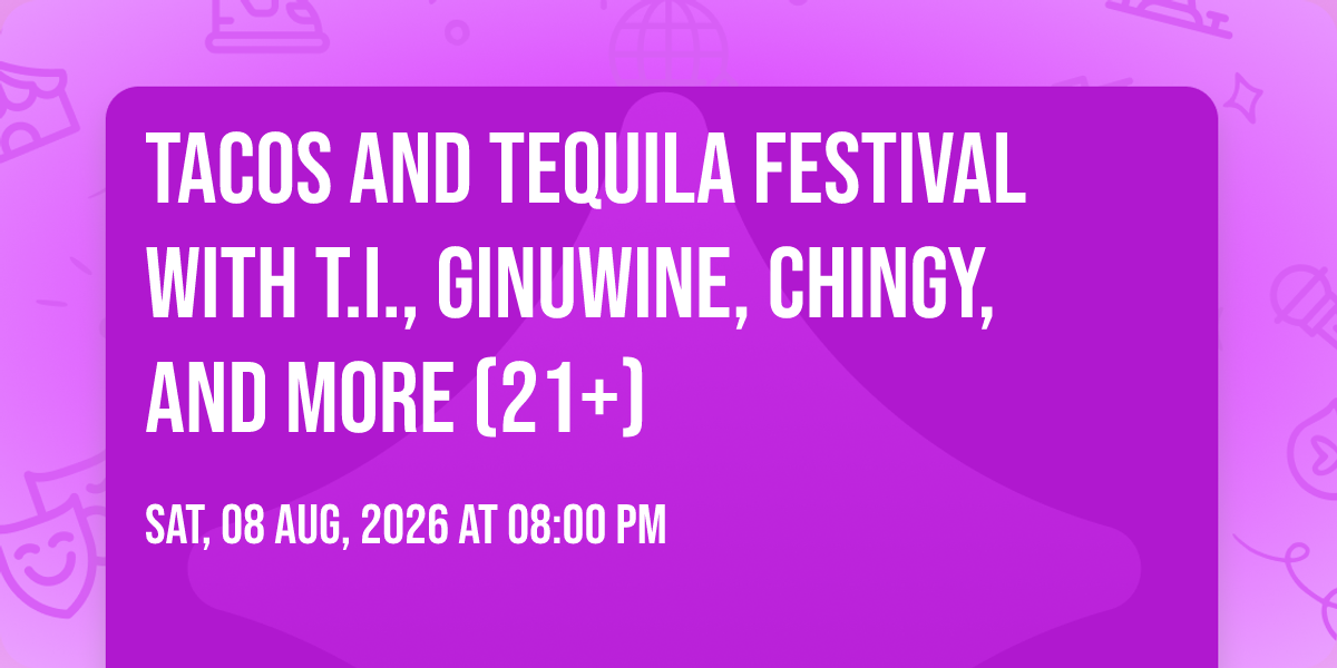 π Location: 38.8949, -104.71π Step into a world of wonder at Tacos and Tequila Festival with T.I., Ginuwine, Chingy, and more (21+), where extraordinary moments await! ποΈ Located at UCHealth Park in dynamic Colorado Springs, CO, this event will become the talk of the town. π Join us on August 8th, 2026 at 08:00 PM for a celebration that defies the ordinary. β¨ This curated experience brings together the best of entertainment, culture, and community spirit. Every detail has been thoughtfully planned to ensure an unforgettable experience for all our guests. π― Take advantage of this opportunity to be part of something special. π Early registration is recommended as space is limited!