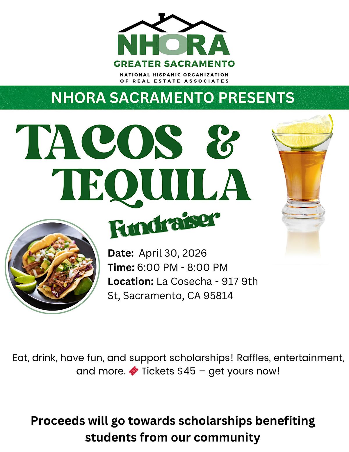 Come hang out in person and enjoy some mouth-watering tacos paired perfectly with a splash of tequila. It's a fun way to support a great cause, meet awesome people, and savor delicious bites and drinks. Don't miss the chance to taco 'bout a good time while making a difference! Proceeds benefit scholarships for students from our community.