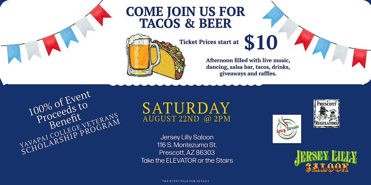 Prescott Regulators & Their Shady Ladies has teamed up with Jersey Lilly Saloon to put on the Taco's & Beer Charity Event for Veterans to help support the Yavapai College Veterans Scholarship Program