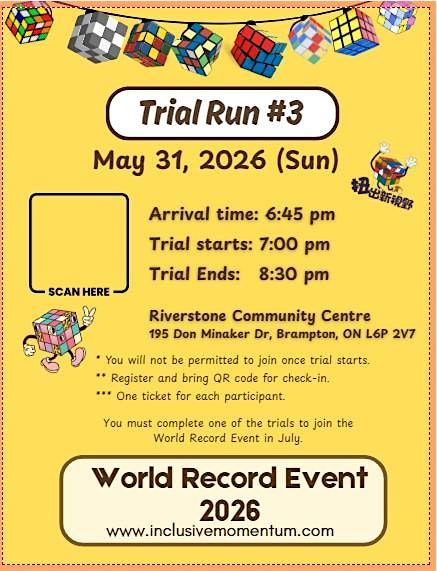 We are recruiting particpants for a Guinness Event to break the world record of "Most people solving rotating tactile puzzle cube (multiple venues)" together on July 11, 2026 at 8 AM at Brampton City Hall. It is an event that takes place the same time in Brampton, Canada and Hong Kong, China.