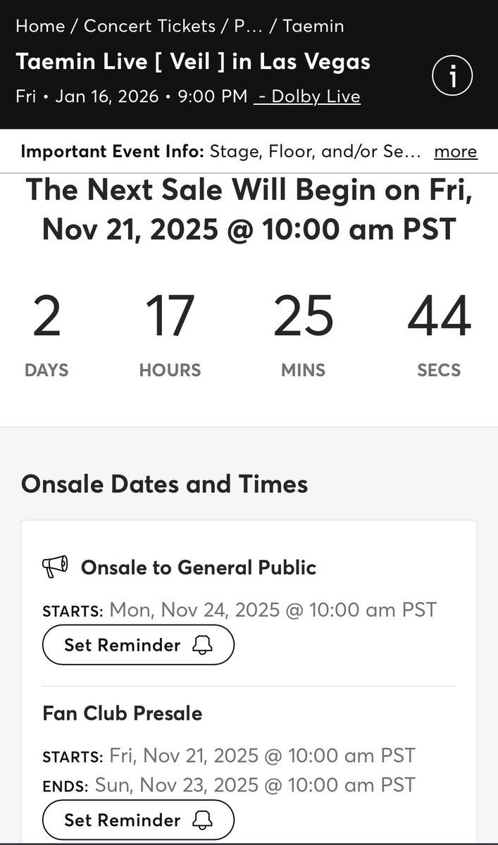 Taemin at Dolby Live at Park MGM🎉 Prepare to be amazed at Taemin Las Vegas Tickets, the most anticipated gathering of the season! 🌟 Set against the stunning backdrop of Dolby Live at Park MGM in vibrant Las Vegas, NV, this event promises to redefine your expectations. 📅 Mark your calendars for January 16th, 2026 at 09:00 PM and get ready to immerse yourself in an atmosphere of wonder and excitement. ✨ From the moment you arrive, you'll be transported into a world where memories are made and stories come alive. They have crafted an experience that perfectly harmonizes entertainment, innovation, and community spirit. ✨ With tickets available at 9.27 EUR, your journey awaits. 🌈 Join us as we create moments that will be discussed for years!