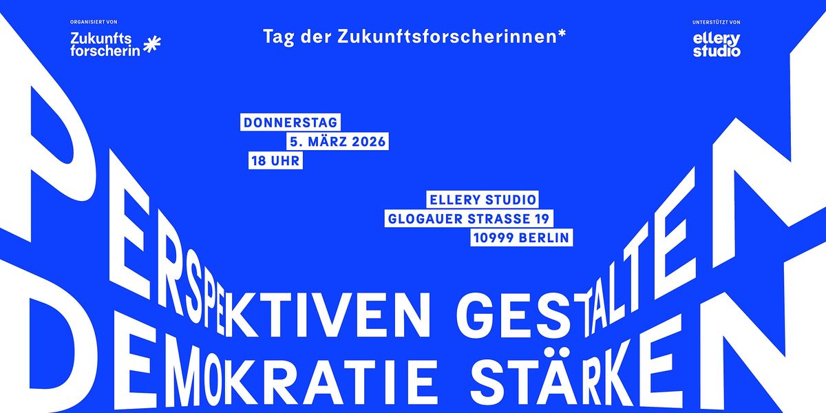 Der Tag der Zukunftsforscherinnen* ist ein Ort für Austausch, Vernetzung und kollektives Weiterdenken. In einer Zeit, in der Rezession, Unsicherheit und politischer Rechtsruck viele Debatten verhärten, erleben wir eine Entwicklung, die Zukunft verengt: anti-demokratische Strömungen als Rückwärtsbewegung – gegen Vielfalt, Offenheit und Möglichkeitsräume.