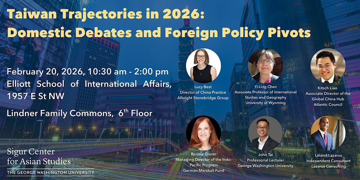 To illuminate these intersecting forces, the Sigur Center for Asian Studies is convening a timely conversation with multidisciplinary experts to explore how Taiwan’s domestic political debates, security pressures, and diplomatic recalibrations are shaping its governance and strategic trajectory in 2026. We invite you to join us for this important and forward-looking discussion!