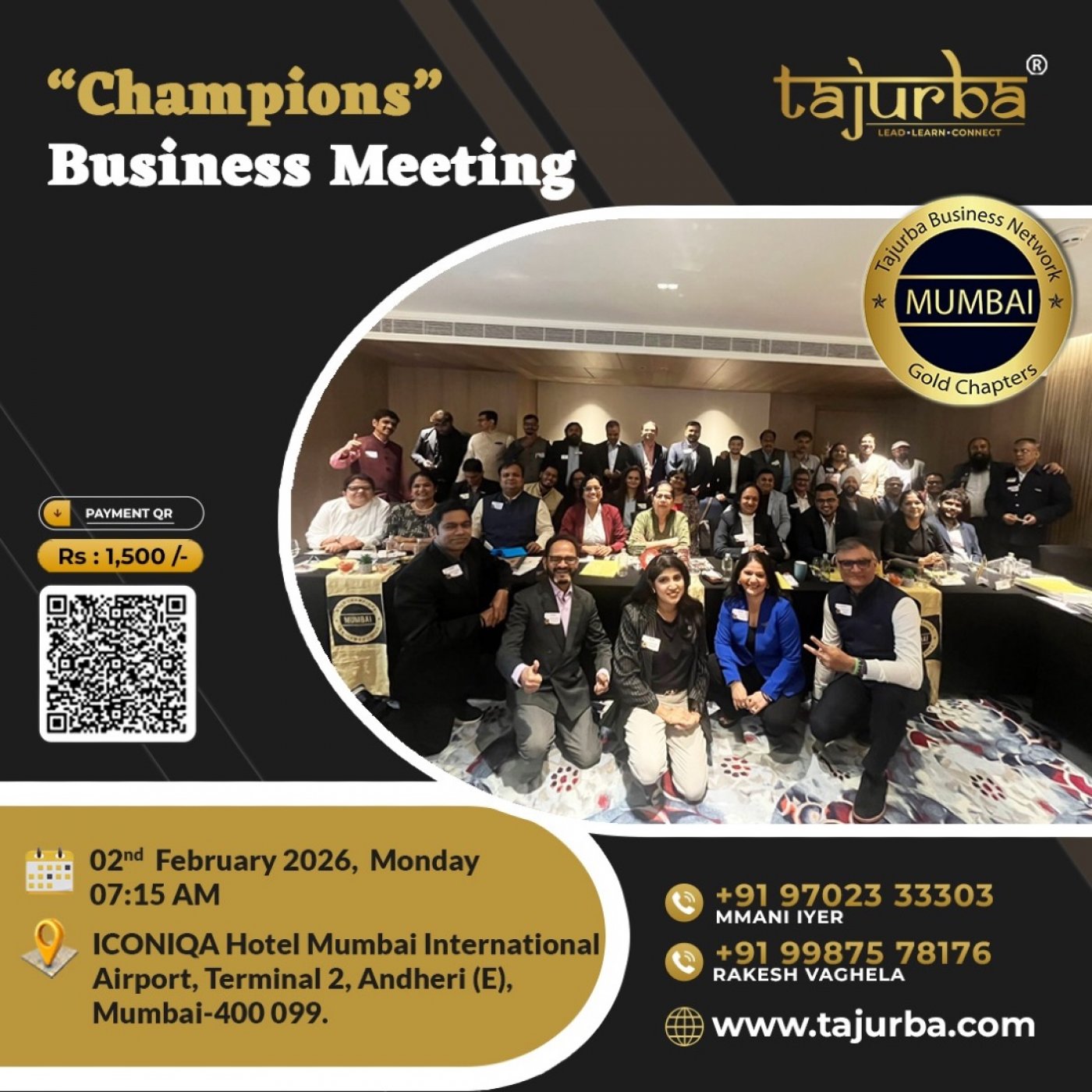 We invite you to be a part of our Tajurba Business Network Gold Chapter meeting which is happening on Monday 2nd Feb 2026 @ 7.15 AM