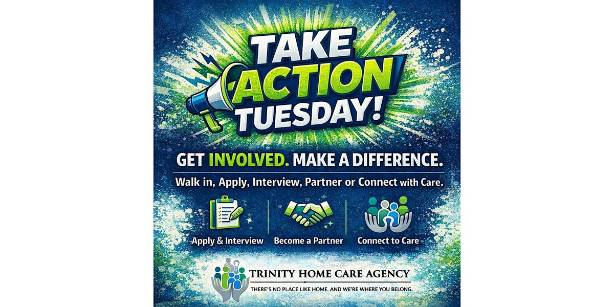 At Trinity Home Care Agency, we believe in showing up for our community in real, impactful ways. Take Action Tuesday is your chance to take the next step—whether that’s professionally, personally, or for someone you care about.