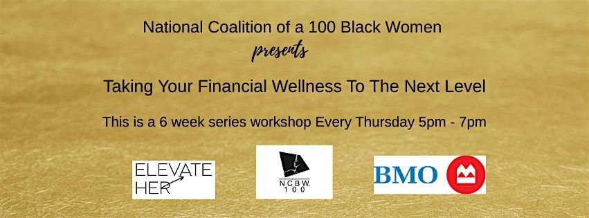 National Coalition of a 100 Black Women presents Taking Your Financial Wellness To The Next Level. This is a 6 week series workshop Every Thursday 5pm - 7pm