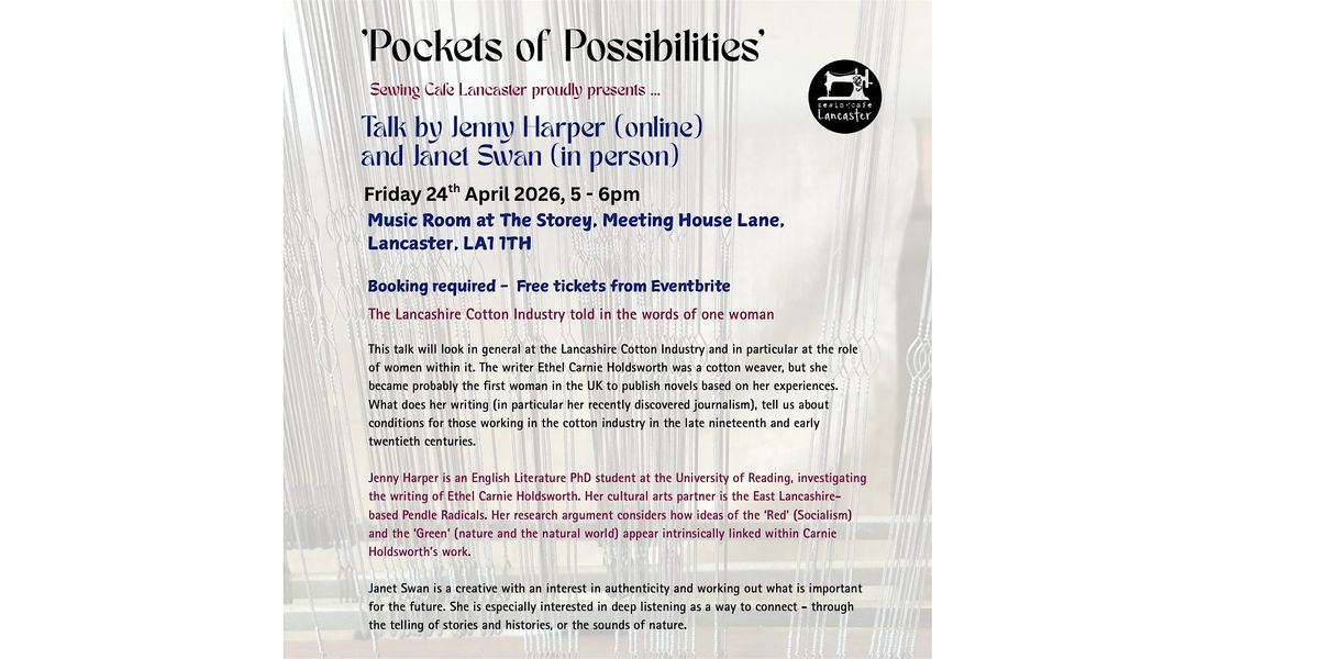 Talk about the Lancashire Cotton Industry, the role of women within it - Ethel Holdsworth, cotton weaver, her written experiences, novels.About this Event