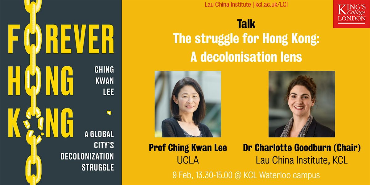 Join us as Prof Ching Kwan Lee discusses the protests in Hong Kong through a decolonial lens, chaired by the Lau China Institute's Dr Charlotte Goodburn, on 9 Feb, 13:30-15:00 at King’s College London Waterloo campus.