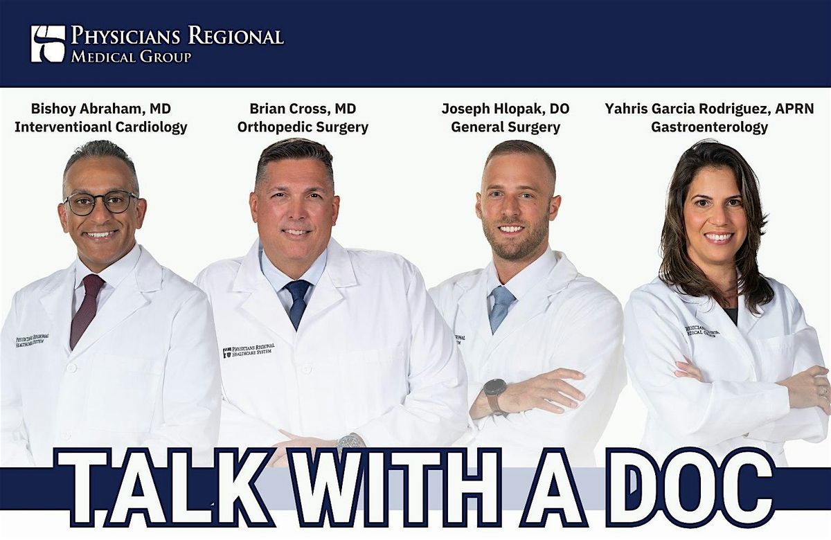 Join us to meet Physicians Regional Medical Group providers from Cardiology, Orthopedics, Digestive Health, General Surgery, Primary Care and Pelvic Floor Therapy from our Marco Island and Collier Boulevard locations. Learn more about our newest providers, services they offer and to schedule appointments!