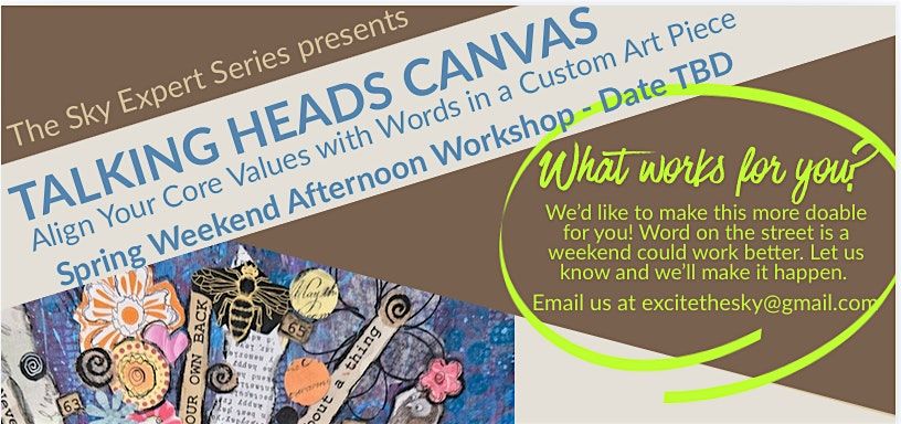 We love this for you so much - we want this workshop to work for your busy Spring! After hearing from a number of folks that a weekend would work better, we want to make it work for you and our artist.