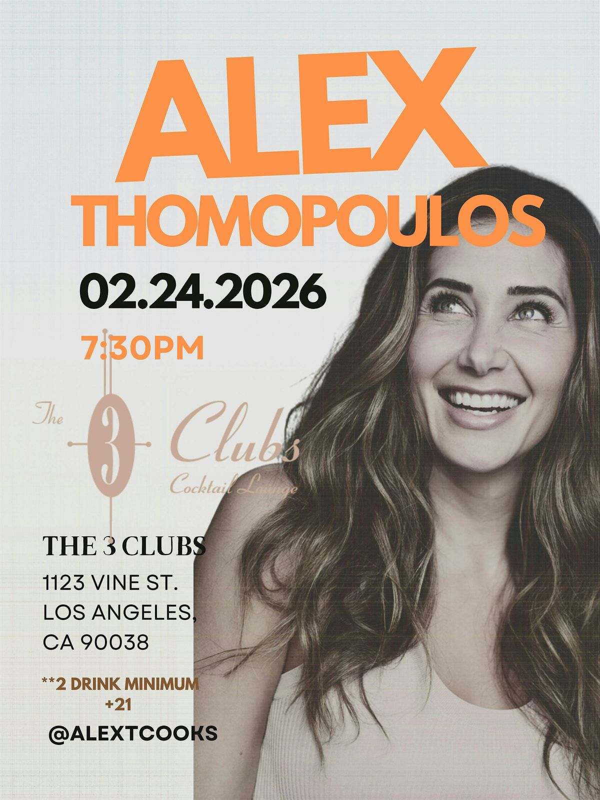 Comedian and Chef Alex Thomopoulos’ passion for food and laughter is infectious. Her spontaneous, irreverent and honest personality is something that makes her a unique talent in both her writing, on stage and on camera.