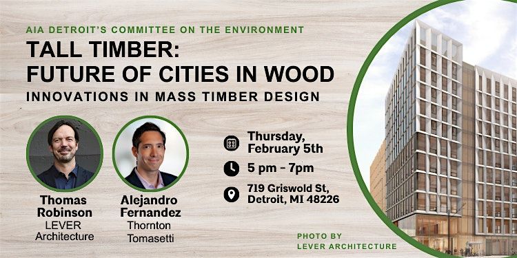 Join AIA Detroit's Committee on the Environment (COTE) for an evening exploring how mass timber is reshaping the future of cities. Tall Timber: Future of Cities in Wood brings together leading voices from LEVER Architecture and Thornton Tomasetti.