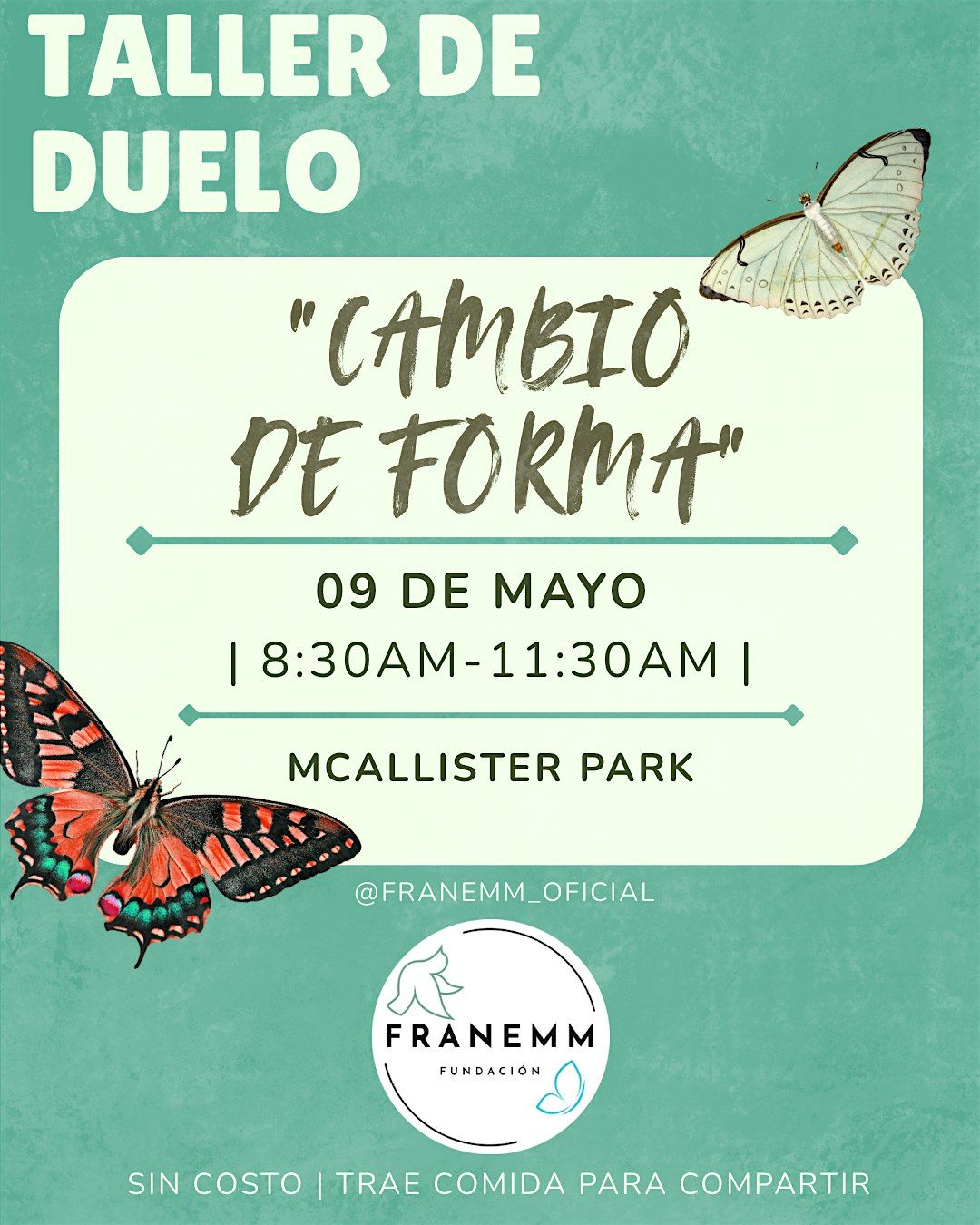 Este taller se llevará a cabo cerca del area del pabellon 3 en el parque McAllister, trae una manta o silla y algo para compartir. Al final tendremos un espacio para convivir en picnic. Por favor, mantente pendiente de tu correo electrónico para agregarte a un grupo de WhatsApp para mayor información el dia del evento.