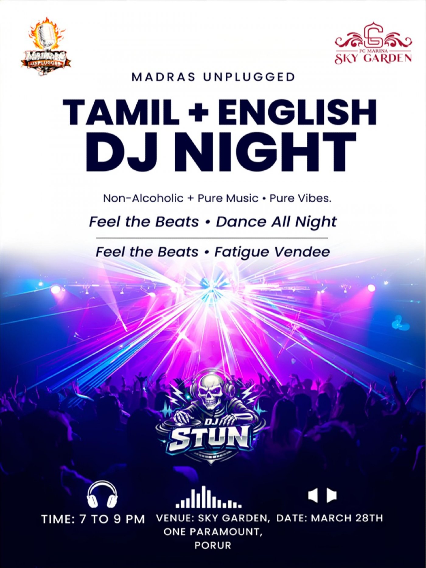 Get ready to dance under the stars at the Tamil + English DJ Night, a high-energy rooftop open-air non-alcoholic party bringing together the best of Tamil chartbusters and English party hits. Experience a vibrant night filled with powerful beats, dazzling lights, and an electrifying dance floor where music lovers can unwind, celebrate, and create unforgettable memories.