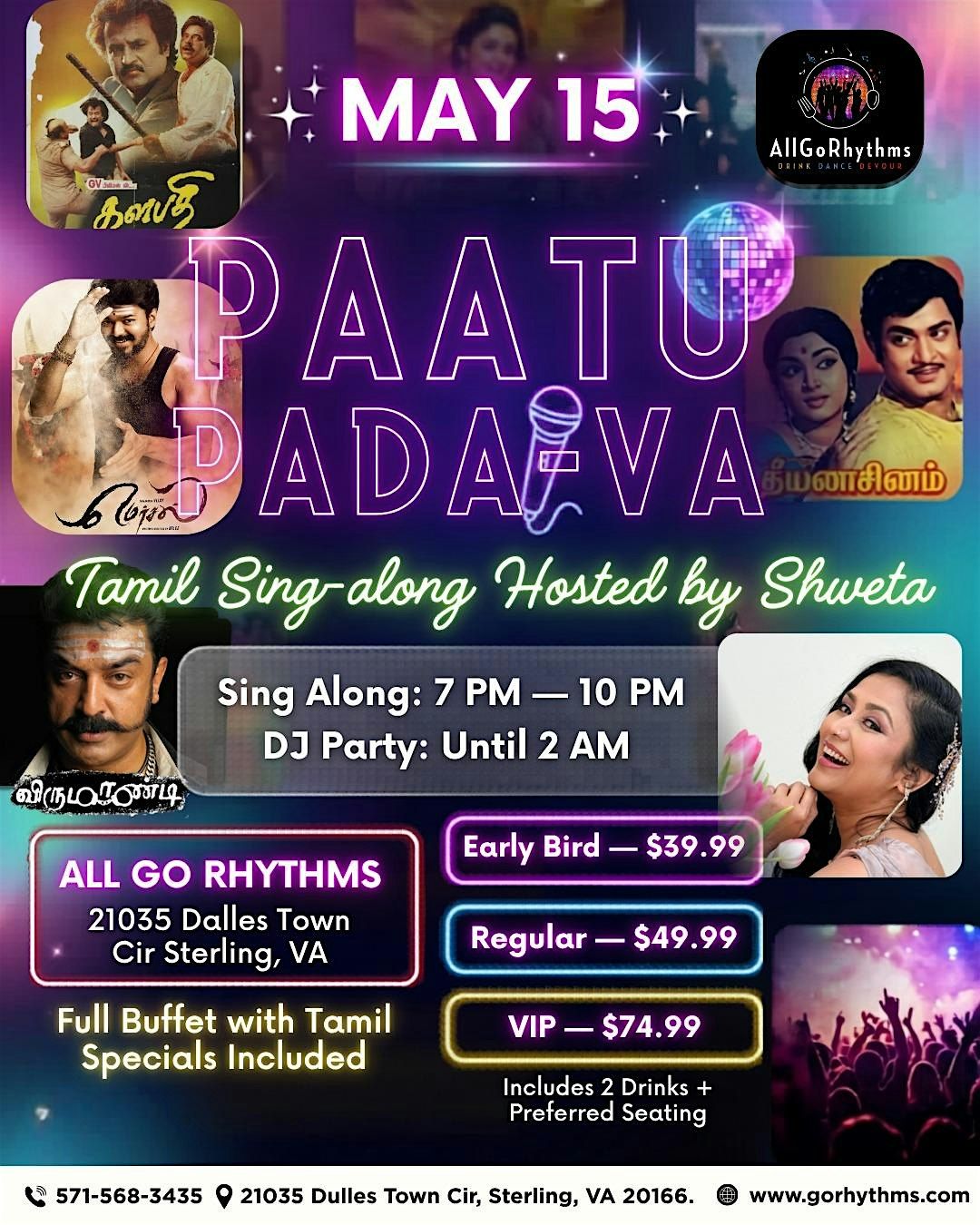 Join us at @allgorhythms_dulles Gastro Bar on May15 for the electrifying Singari Sarakku Sing-Along Event! 🎤🎶