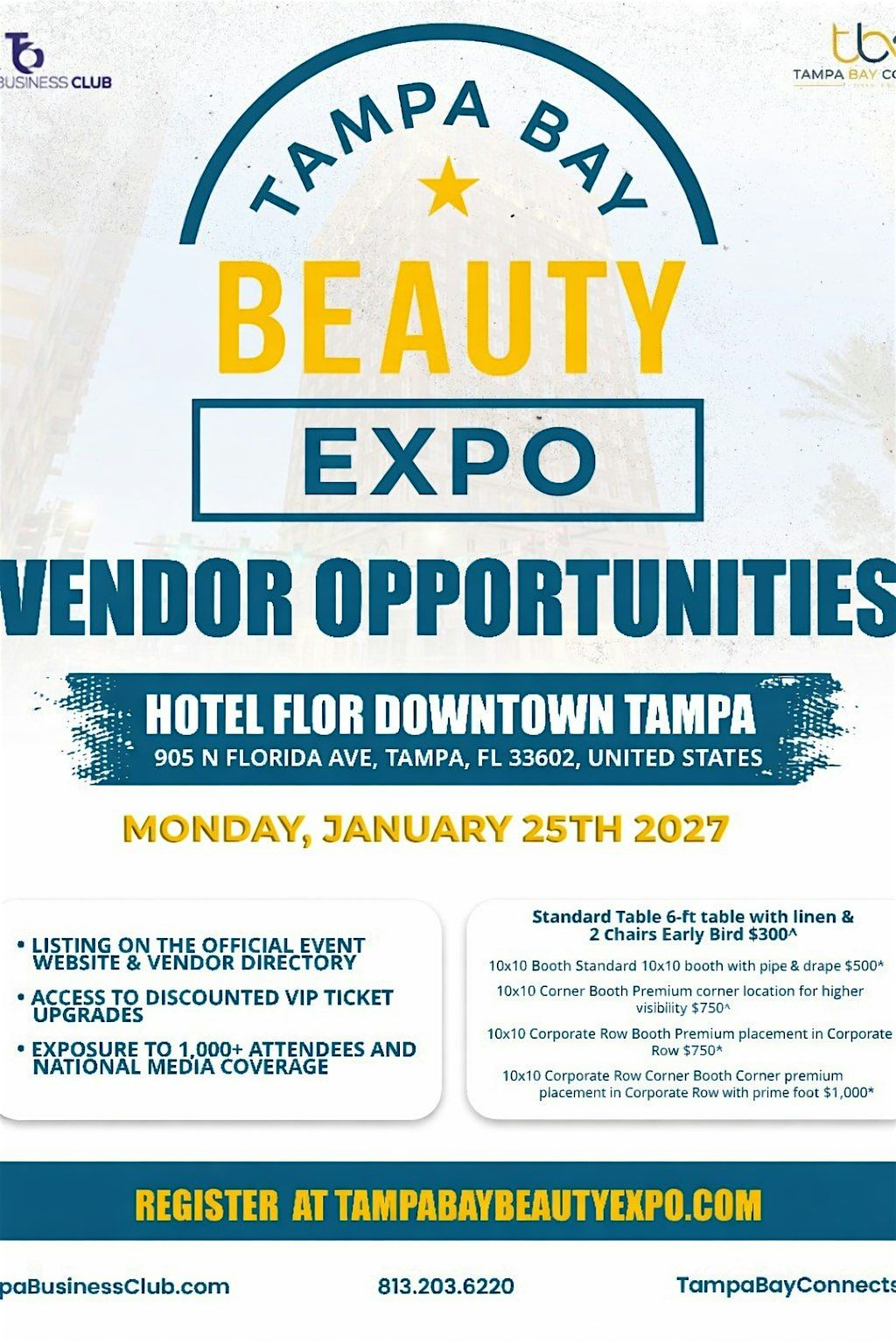 Come join us at Hotel Flor Tampa Downtown, Tapestry Collection by Hilton on January 25, 2027 at 9:00 AM (Eastern Time) for a day filled with beauty, glam, and fun!
