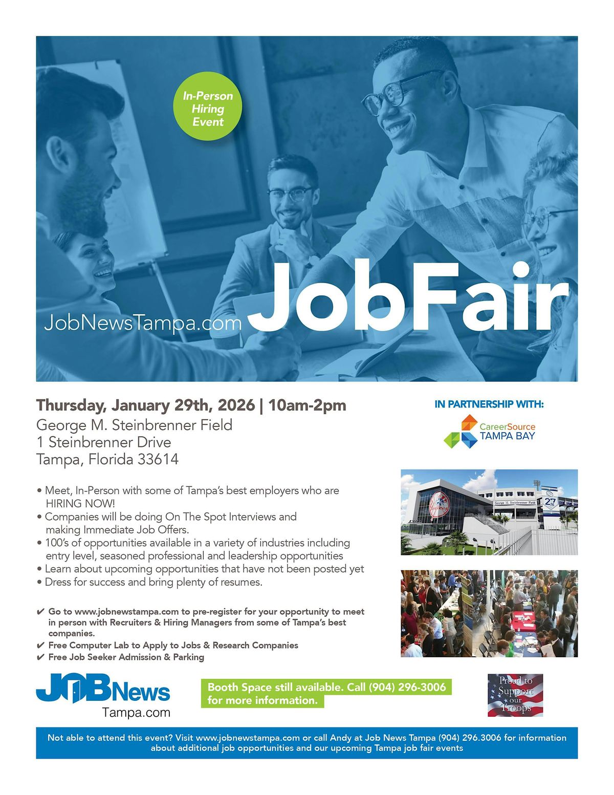 ** TAMPA JOB FAIR - Local Companies Hiring for 100's of JOBS January 29th