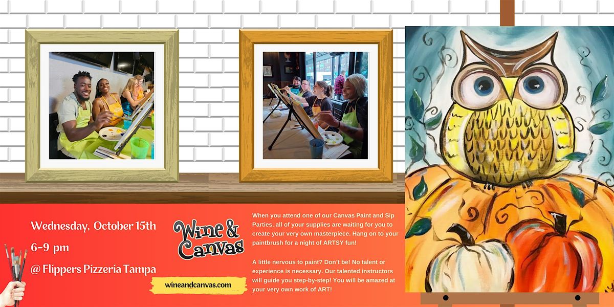🦉🎃 Join us for a cozy autumn evening at Flippers Pizza Tampa as we create the charming Owl and Pumpkin masterpiece! Think crisp fall vibes, glowing pumpkins, and one wise little owl perched in seasonal splendor.