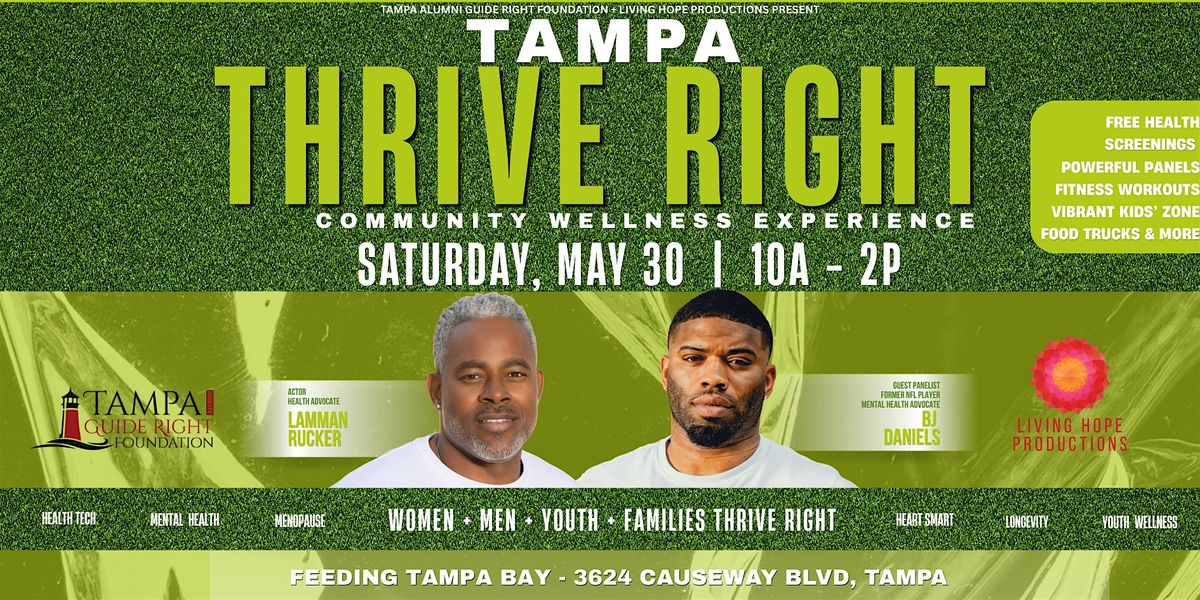 Join us for the Tampa Thrive Right Community Wellness Experience designed to uplift, inform, and energize the entire community! Enjoy free health screenings, powerful panel conversations, fitness workouts, a vibrant kids’ zone, food trucks, and access to valuable wellness resources all in one place. Plus, don’t miss meeting Actor & Health Advocate Lamman Rucker and more surpise guests. Bring your family, bring a friend, and come invest in your health in a fun, inspiring environment!