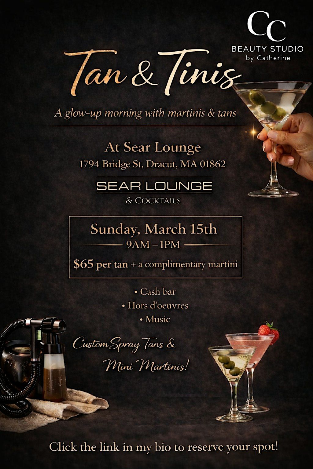 Girls day vibes: come comfy in sweats, no makeup, fresh tan & martinis 🍸 Non-alcoholic sips available too ✨