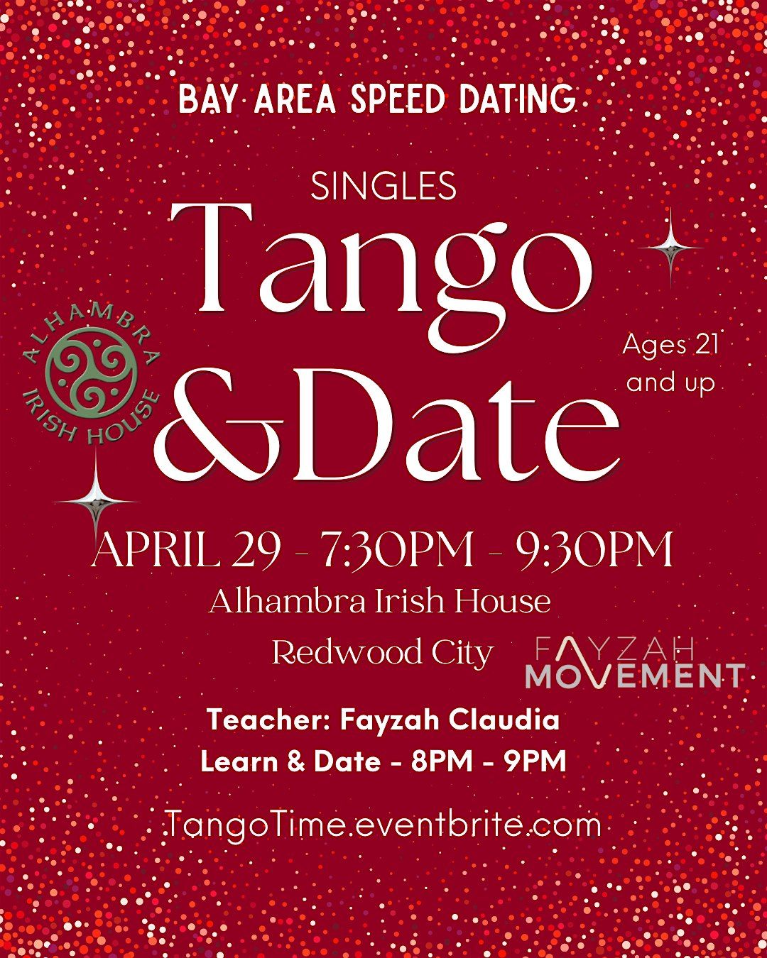 Looking to meet new people and dance the night away? Join us at the Alhambra Irish House in Redwood City on Wednesday, April 29th at 7:30 PM for a fun and relaxed evening of tango and mingling. Perfect for singles ages 21 and up who want to enjoy great music, good vibes, and maybe find a dance partner or date. No experience needed—just bring your smile and your moves!