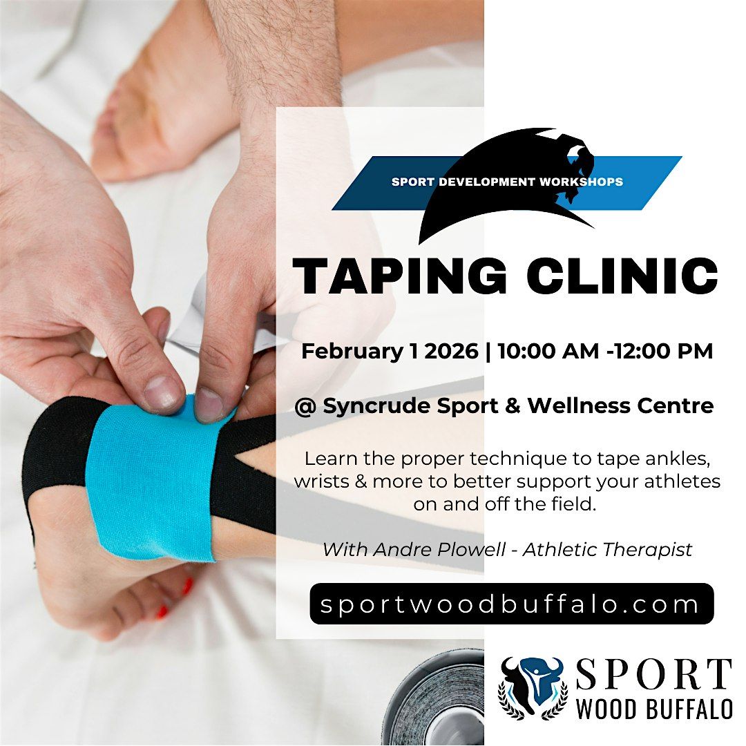 This taping clinic hosted by Sport Wood Buffalo offers practical, hands-on instruction in proper athletic taping techniques. The session will be led by Andrew Plowell, Athletic Therapist with the Keyano Huskies, and is designed for coaches, parents, athletes, and volunteers. Participants will learn fundamental taping methods, gain confidence in when and how to tape safely, and develop skills to better support injury prevention and athlete care in safe sport environments.