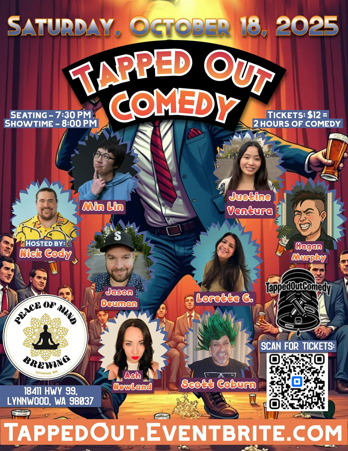 Tapped Out Comedy is a standup comedy showcase that aims to connect local audiences with up-and-coming comedians. Our goal is to put on shows that will make a wide range of audiences laugh so hard that they might have to tap out, while also supporting the tapped out wallets of our featured comics. Bring your friends, order some beers and prepare to laugh!