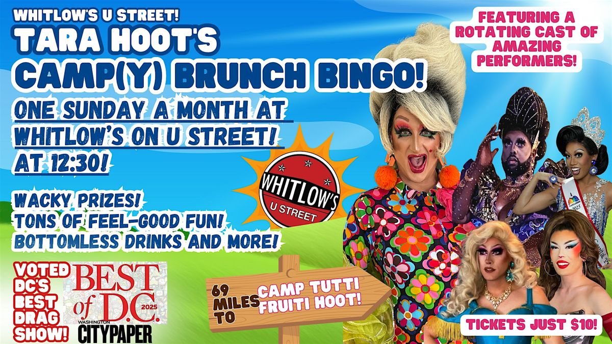 It's campy, it's fabulous and it's JUST what you need! Join Tara Hoot, along with other fabulous drag performers, for DC's only Drag Brunch Bingo at Whitlow's U Street! And we were just voted Best Drag Show for Washington City Paper's Best of 2025! Wacky prizes, fabulous performances, and a space for you to revel in the ridiculousness! Tickets are only $10! Add on delicious food and bottomless drinks and you're set for some fun! What more could you want!? Drag your friends and let's have a blast!