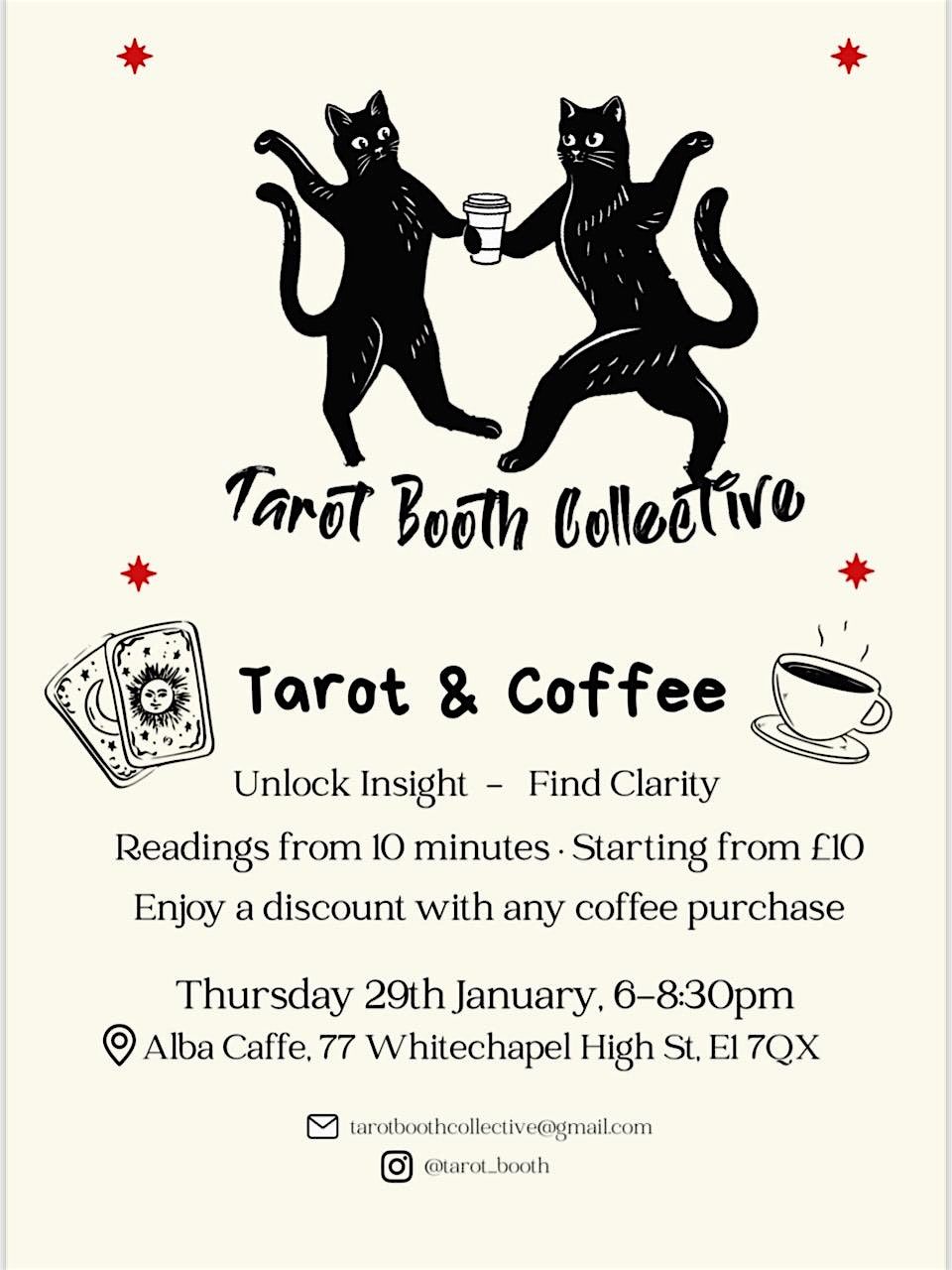 Readings are on a drop in, first come first serve basis. As an intro offer, for our first booth, we are discounting reading to £8 for a 10 min read (normally £10) and £16 for a 20 min (normally £20) with any coffee purchase. Exact cash welcome or card payment available.