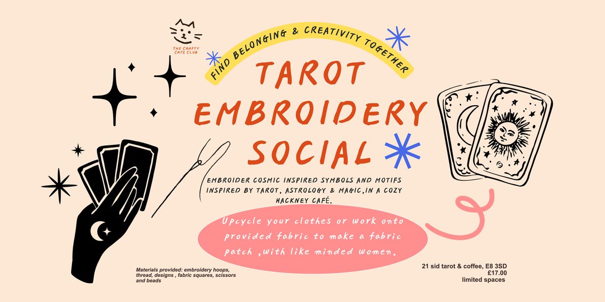 Get ready to stitch some magic! Whether you're a tarot enthusiast , love astrology, angel numbers, energy, chakras, or just love embroidery, or a bit of both. In this stitch social you will have a range of designs inspired by these themes, ready to be stitched onto your clothes or pre loved item.