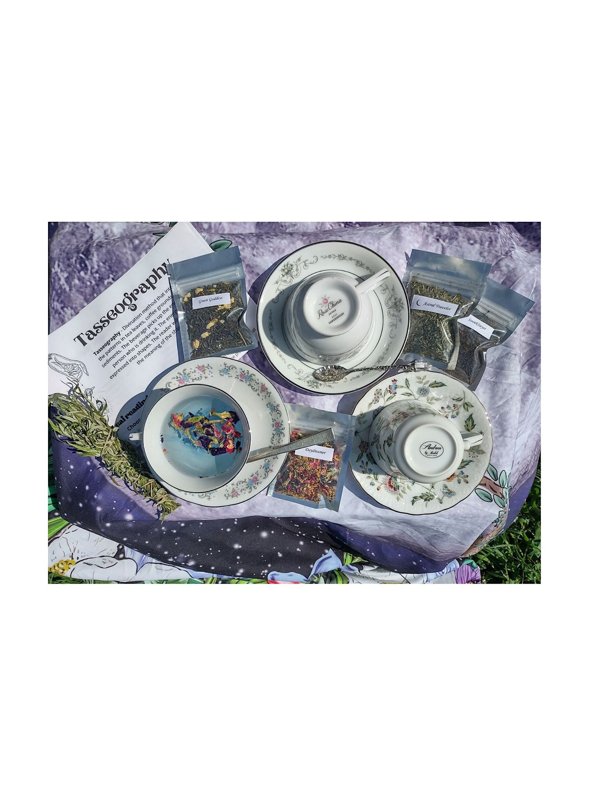Each participant will receive all materials needed during the workshop and will take home their own Tea Leaf Reading Kit, including: