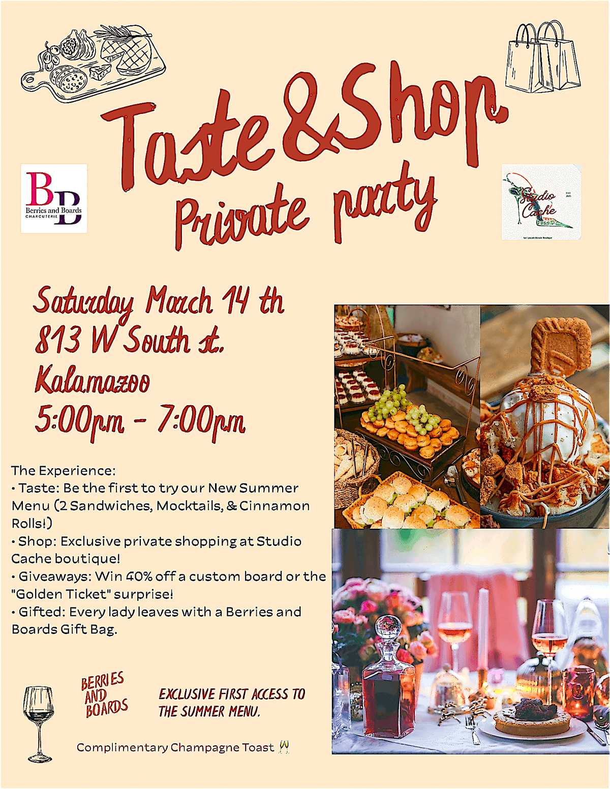 Get ready for an exclusive in-person gathering where you can taste amazing flavors and shop unique finds all in one awesome spot! This is the perfect chance to enjoy great company, discover new favorites, and have a blast in a laid-back vibe. Don’t miss out on this fun-filled private party experience designed just for you!