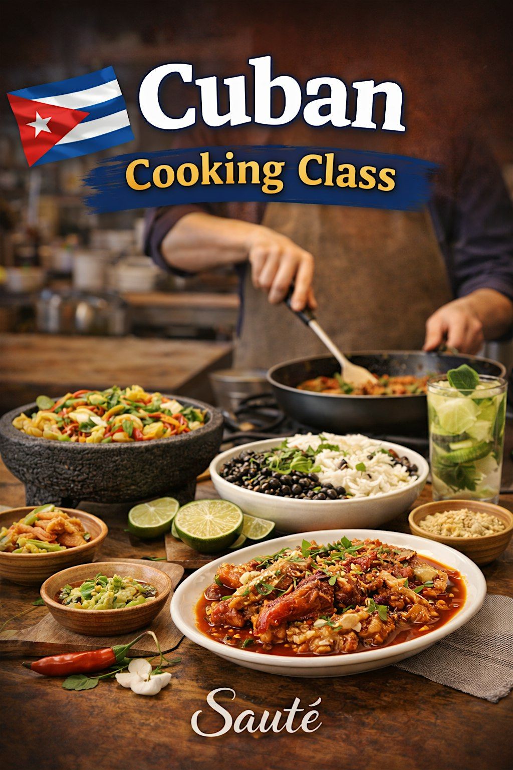 Join us for Sabor Cubano, a flavorful culinary experience where you'll explore the heart and soul of traditional Cuban cuisine. Whether you're a beginner or a seasoned cook, this class is perfect for anyone who loves bold spices, fresh ingredients, and unforgettable meals.