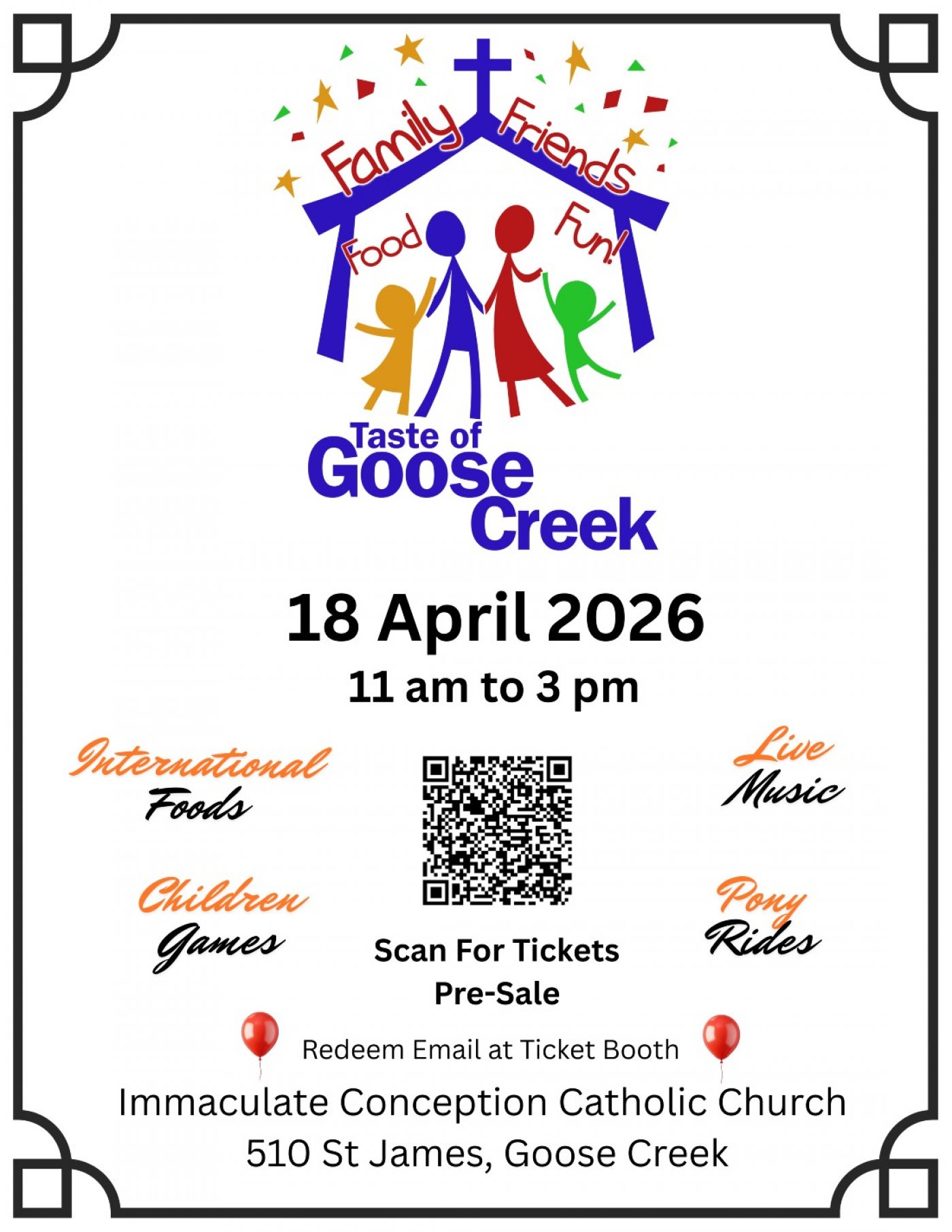 International Food galore, games, pony rides and live entertainment for our annual church fundraising.