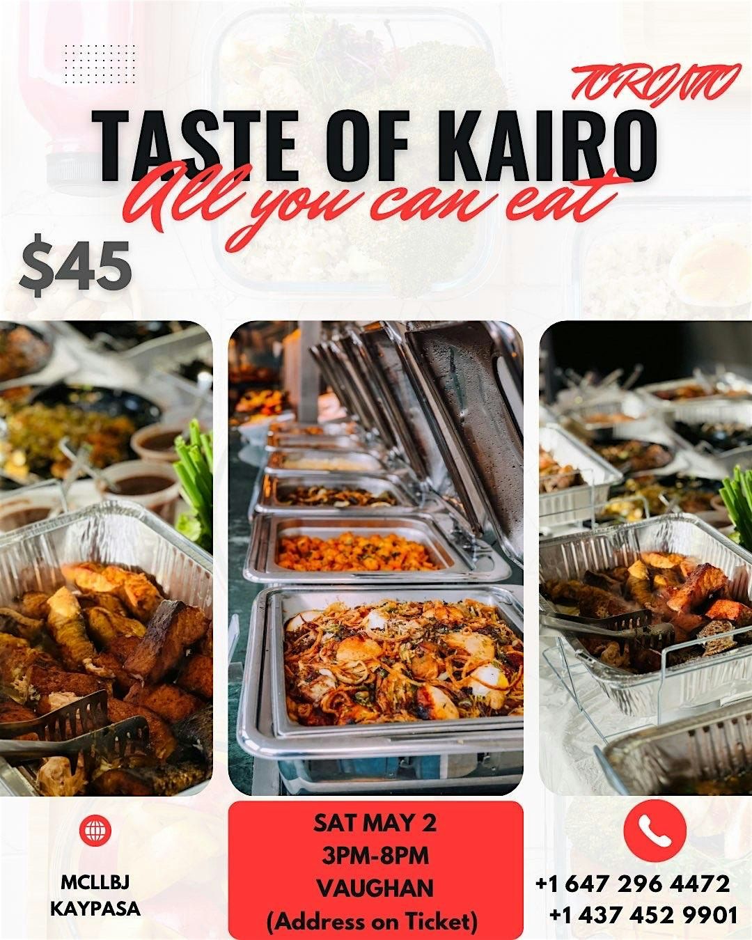 Get ready for an unforgettable in-person experience packed with the vibrant flavors of Kairo! Dive into a world of delicious dishes, amazing vibes, and great company. Whether you're a foodie or just love a good time, Taste of Kairo is the place to be. Come hungry, leave happy!